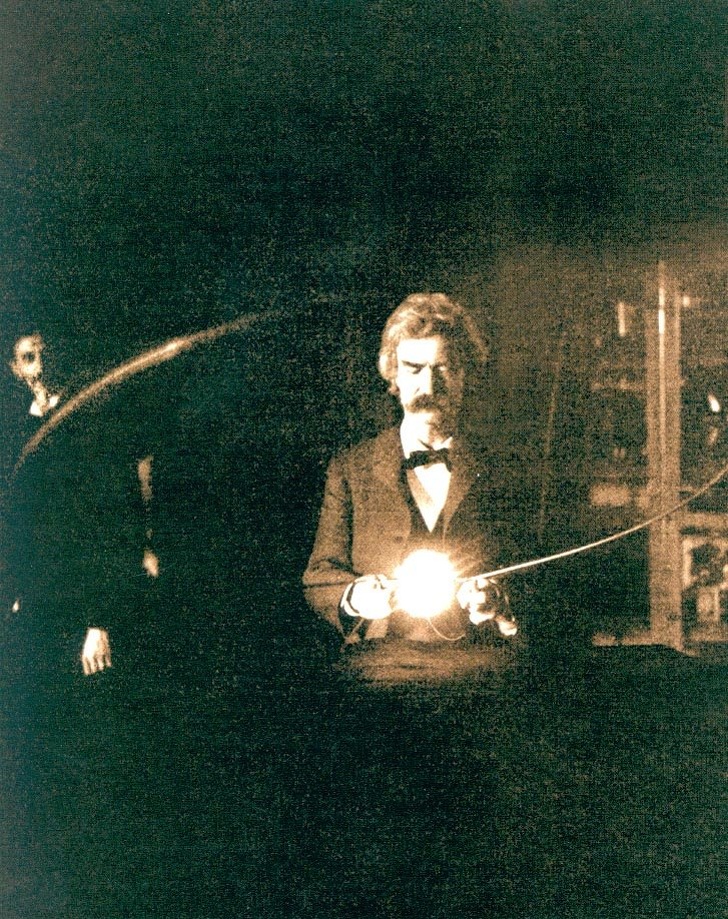 18. Mark Twain dans le laboratoire de Nikola Tesla, en 1894