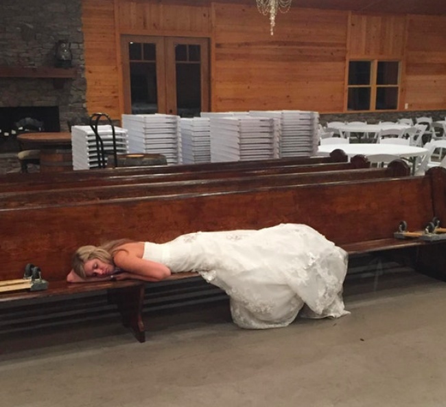 20. Cette jeune mariée a passé la pire nuit de noces qu’il est possible d’imaginer… Saoule, elle a fini la soirée sur un banc