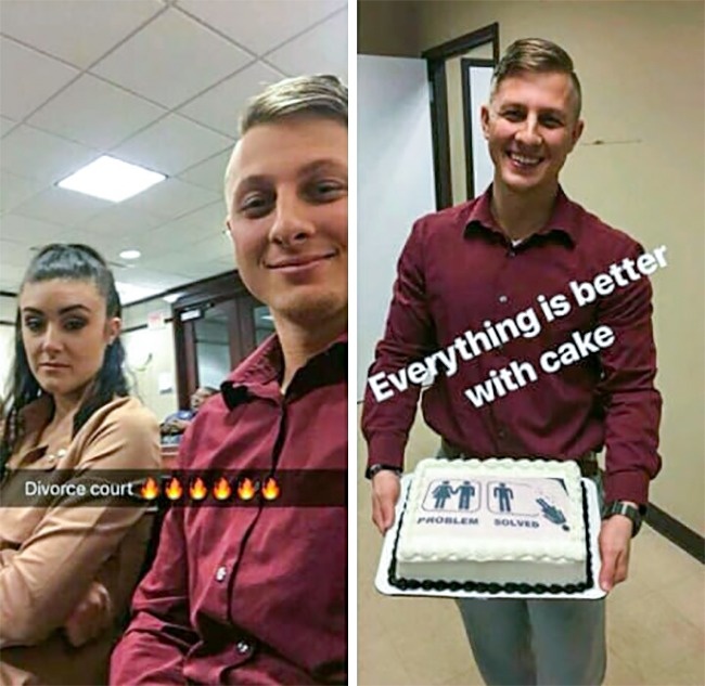 « Instance de divorce en cours » - « Tout est meilleur avec un gâteau : les problèmes sont résolus »
