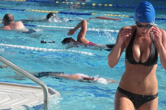 13. Cette femme a demandé à son mari de la prendre en photo dans la piscine… Sa femme est celle qui nage au milieu !