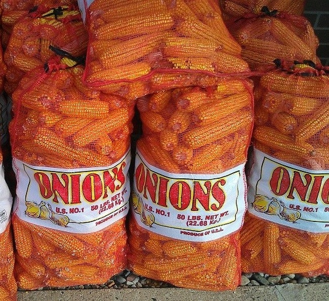8. Presque ! Des maïs dans des sacs d’oignons, comment ont-ils pu en remplir autant sans s’en rendre compte ?
