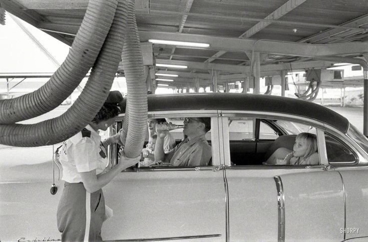 24. L'ancêtre de la climatisation, aux abords d'un restaurant de Houston, au Texas, en 1957