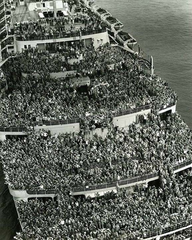 4. Le paquebot Queen Elizabeth ramène les troupes américaines à New York à la fin de la Seconde Guerre mondiale