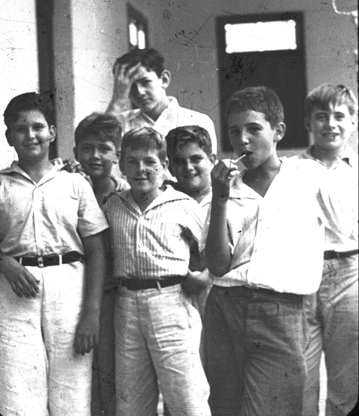 13. Le tout jeune Fidel Castro (avec la sucette) pose avec ses amis à Santiago, Cuba en 1940.