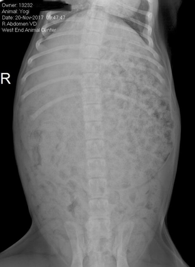 11. Ce chiot très gourmand est entré dans la réserve familiale la nuit dernière, a plongé dans le sac de croquettes et 200 euros plus tard, voici le souvenir de sa gourmandise : il n’y a aucun organe de visible sur cette radio : seulement des croquettes !