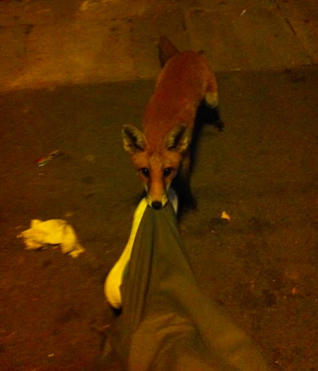 23. Cet homme s’est endormi à l’arrêt de bus, il s’est réveillé parce qu’il sentait que quelqu’un lui tirait le pantalon et en fait…