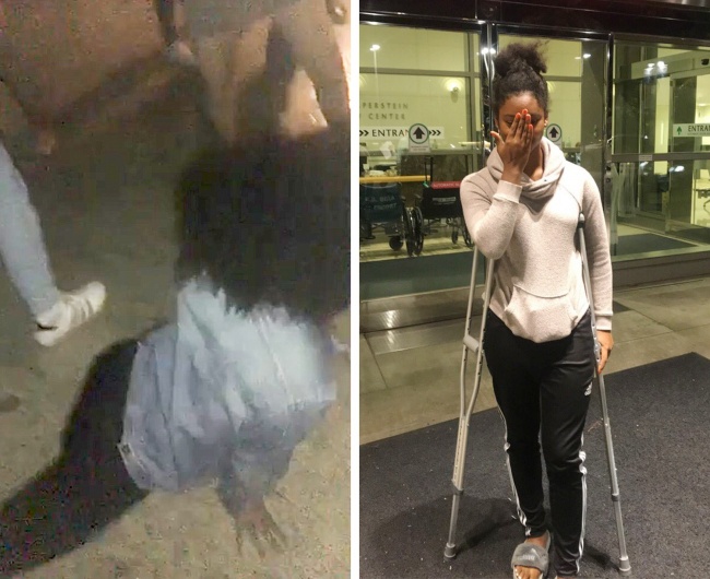 1. Cette jeune fille a bu un peu plus que d’habitude et a perdu l’équilibre sur la piste de danse… Elle a fini la nuit aux urgences et marche avec des béquilles…