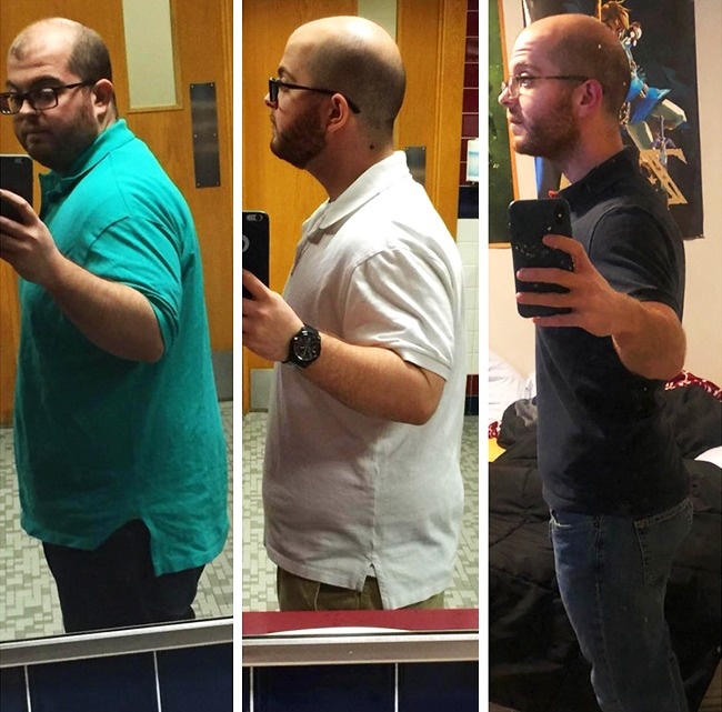 2. Il y a 9 mois, cet homme de 58 ans se prenait en photo avec la ferme intention de perdre du poids. Avec ces 154 kilos et son diabète de type II, il a été malade du cœur. Après s’être pris en main, le diabète est un mauvais souvenir et il ne pèse plus que 107 kg