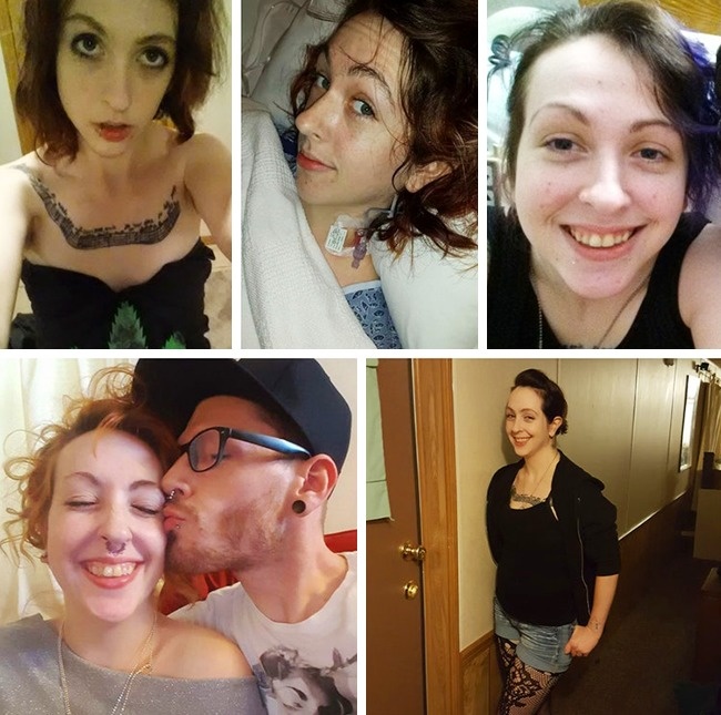 26. La photo de gauche montre cette jeune femme aux urgences après une overdose. Épuisée d’être sans arrêt fatiguée et malade, elle s’est prise par la main et la voici à droite après 6 mois de sobriété !