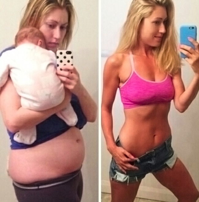 10. Voici cette jeune maman après l’accouchement et 10 mois après, grâce au sport