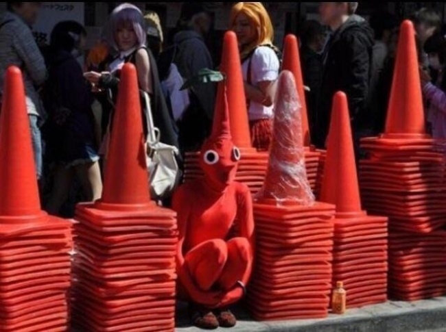 4. Nul ne sait pourquoi cet homme s’est déguisé en plot rouge, mais ça reste très drôle !
