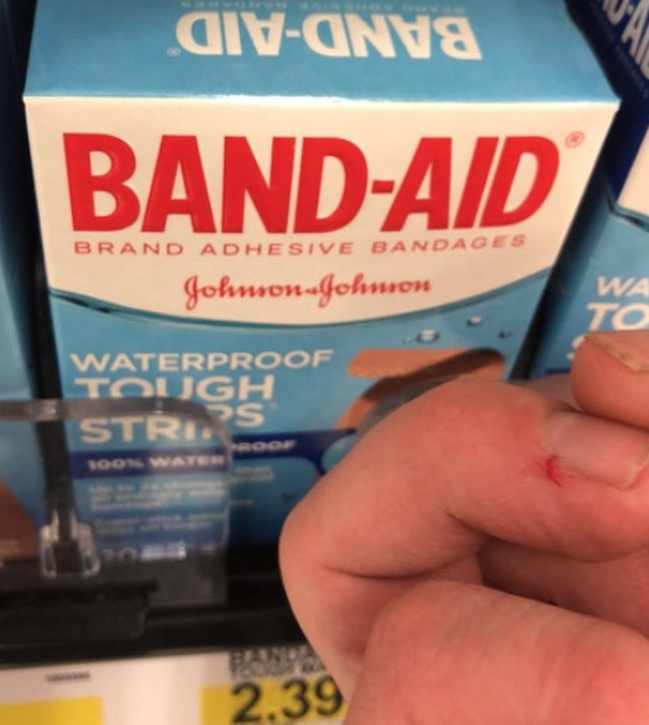 7. Cet homme s’est coupé avec le paquet de pansements qu’il essayait d’acheter
