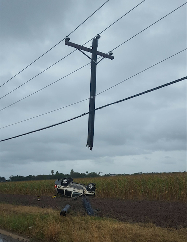 22. Cette voiture a percuté le poteau électrique. Bien qu’il lui manque la partie inférieure le reliant au sol, il est resté suspendu en lévitation !