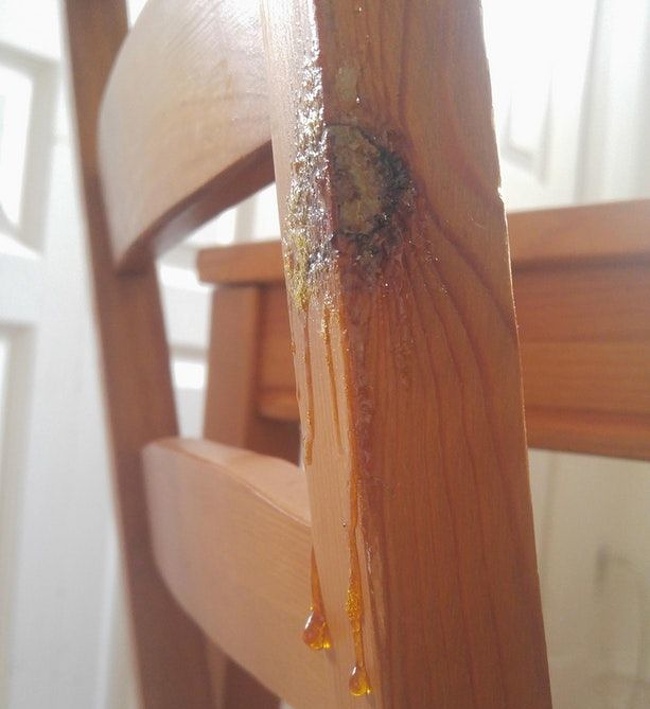 24. Le bois est un matériau vivant : même transformé, il continue de vivre, la preuve ici, avec cette sève qui sort de la chaise