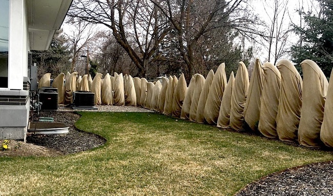 16. Les propriétaires de cette maison ont tout simplement couvert ces buissons pour éviter qu’ils ne gèlent, la nuit, le spectacle doit être effrayant