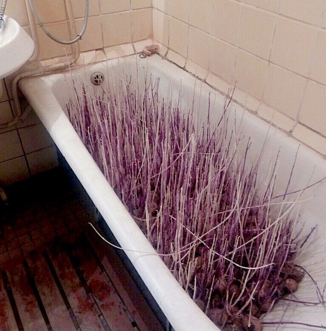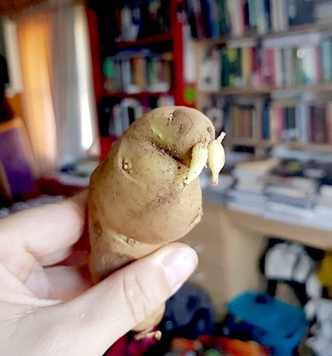 1. Il s’agit de pousses de pommes de terre dans une baignoire, mais cela fait rapidement penser à un jardin de film d’horreur