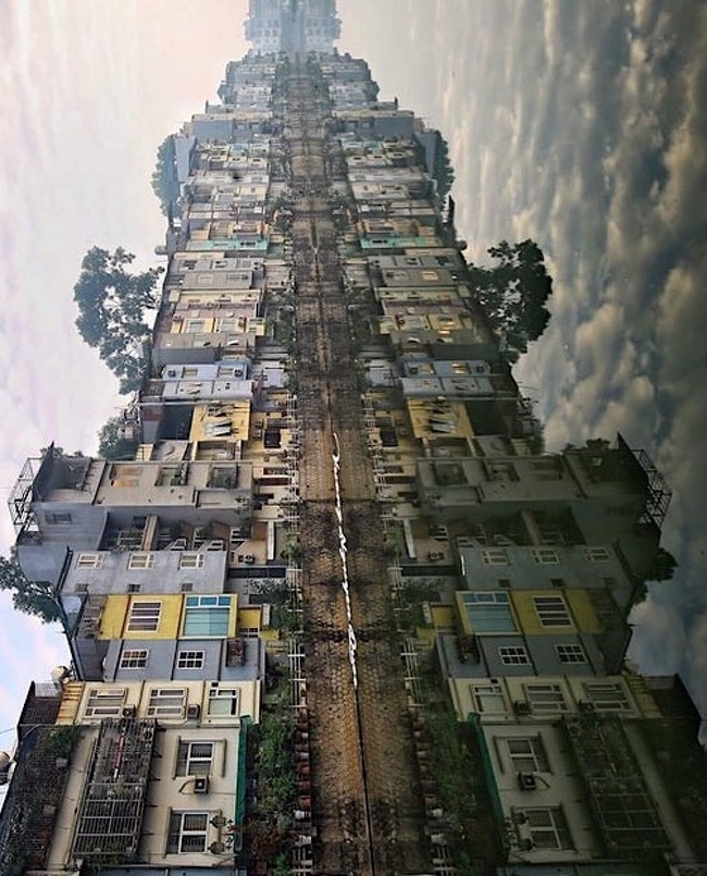 14. Il suffit de retourner la photo d’un quart de tour dans le sens inverse des aiguilles d’une montre, pour voir apparaitre un gratte-ciel monumental !