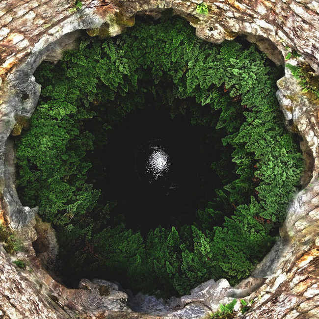 30. En Italie existe un trou profond et vert débouchant sur un lac !