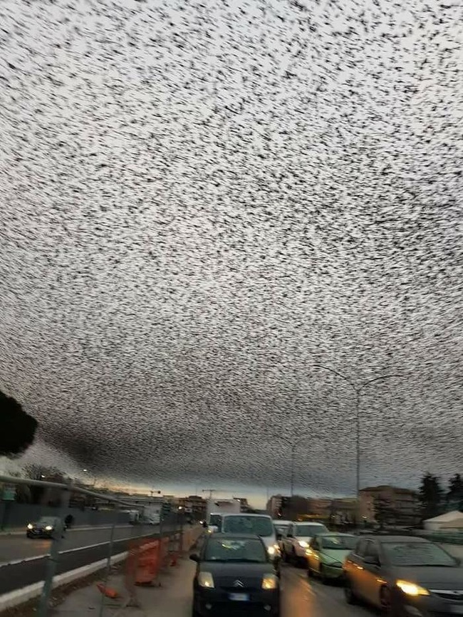 20. C’est le ciel que les Romains ont pu observer il y a quelques années, après un envol de milliers d’étourneaux !