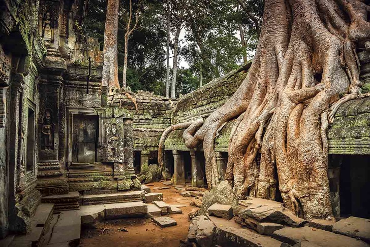 4. Au Cambodge et plus précisément à Angkor Wat, les racines des arbres épousent les temples et diverses constructions