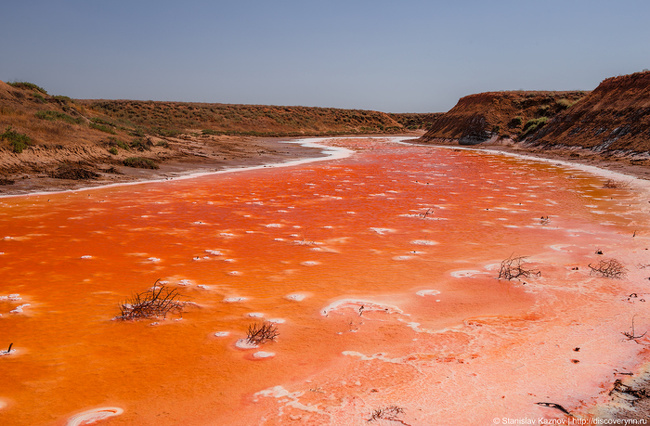 5. Cette rivière russe se nomme Gorkaya. Elle doit sa couleur au niveau élevé d’oxydes métalliques que contient son eau. Celle-ci passe de l’orangé au pourpre en fonction des saisons