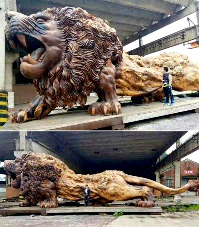 12. Cette magnifique sculpture de lion a été réalisée par 20 personnes et pendant trois ans, dans le tronc d’un séquoia mort