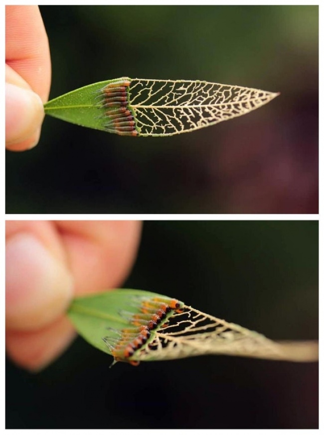19. Ces petits insectes mangent une feuille en ne laissant que son squelette !
