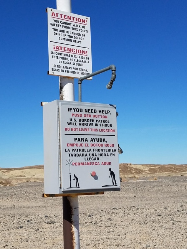 22. Ce bouton vous permet d’être secouru par les douanes en une heure après la traversée du désert au Mexique