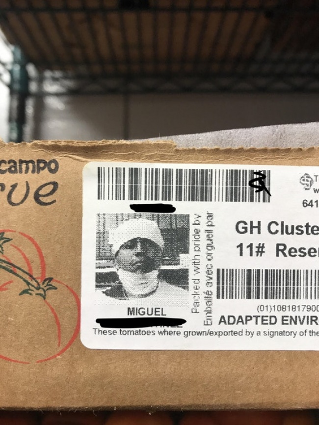 18. Ce carton est estampillé de la photo de la personne qui a préparé le contenant