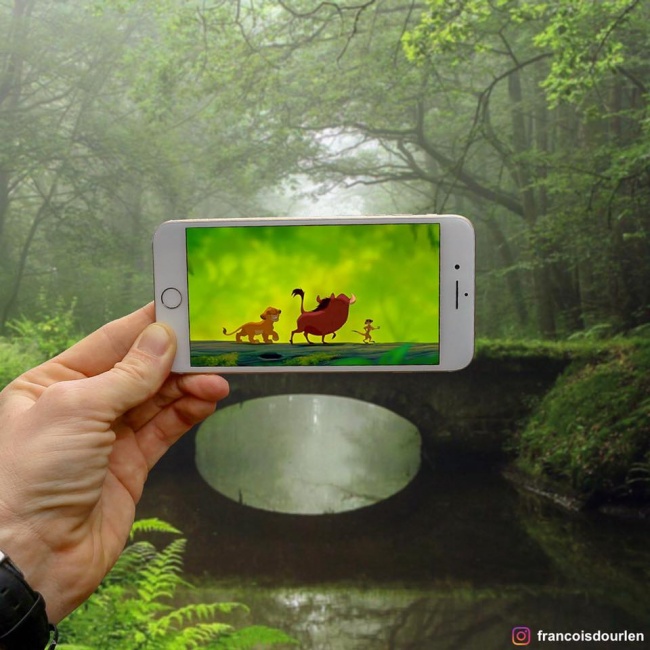L’univers cinématographique est souvent inspiré du monde réel. Afin de retrouver toute la magie des animations et films qui nous font tant rêver, François Dourlen a trouvé un moyen pour le moins insolite. Ce français s’arme de son iPhone et replace des personnages de dessins animés, films ou même séries, dans des scènes de la vie réelle.
