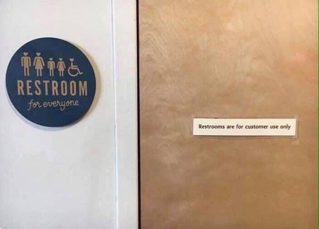 « Toilettes pour tous » - « Ces toilettes sont uniquement réservés aux clients »