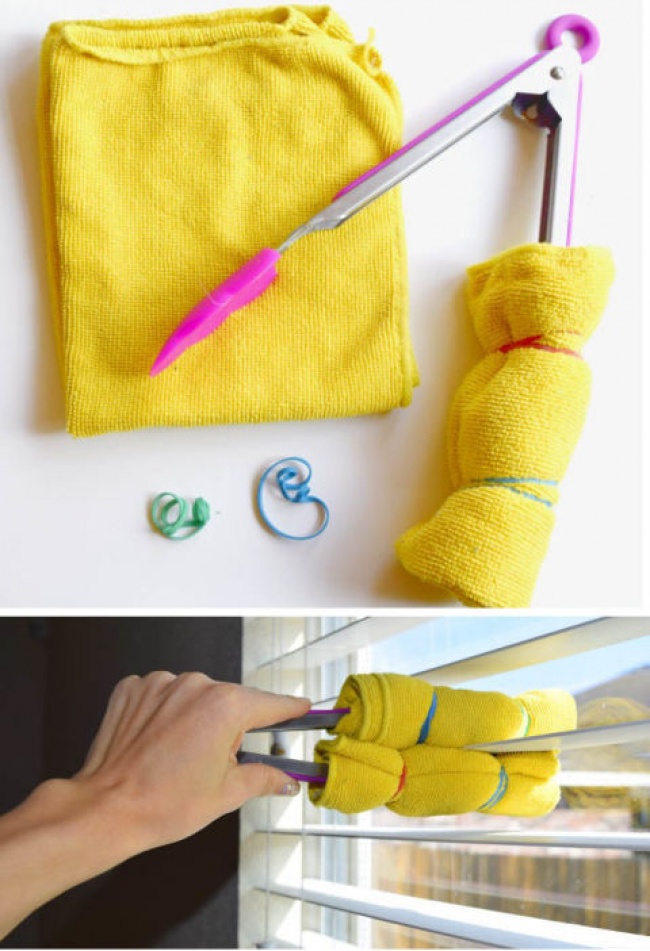 Pour nettoyer efficacement vos stores, enroulez des chiffons humides à l’aide d’élastiques, sur pince à spaghetti. Une technique simple et plutôt efficace puisqu’elle est même utilisée par des professionnels du ménage.